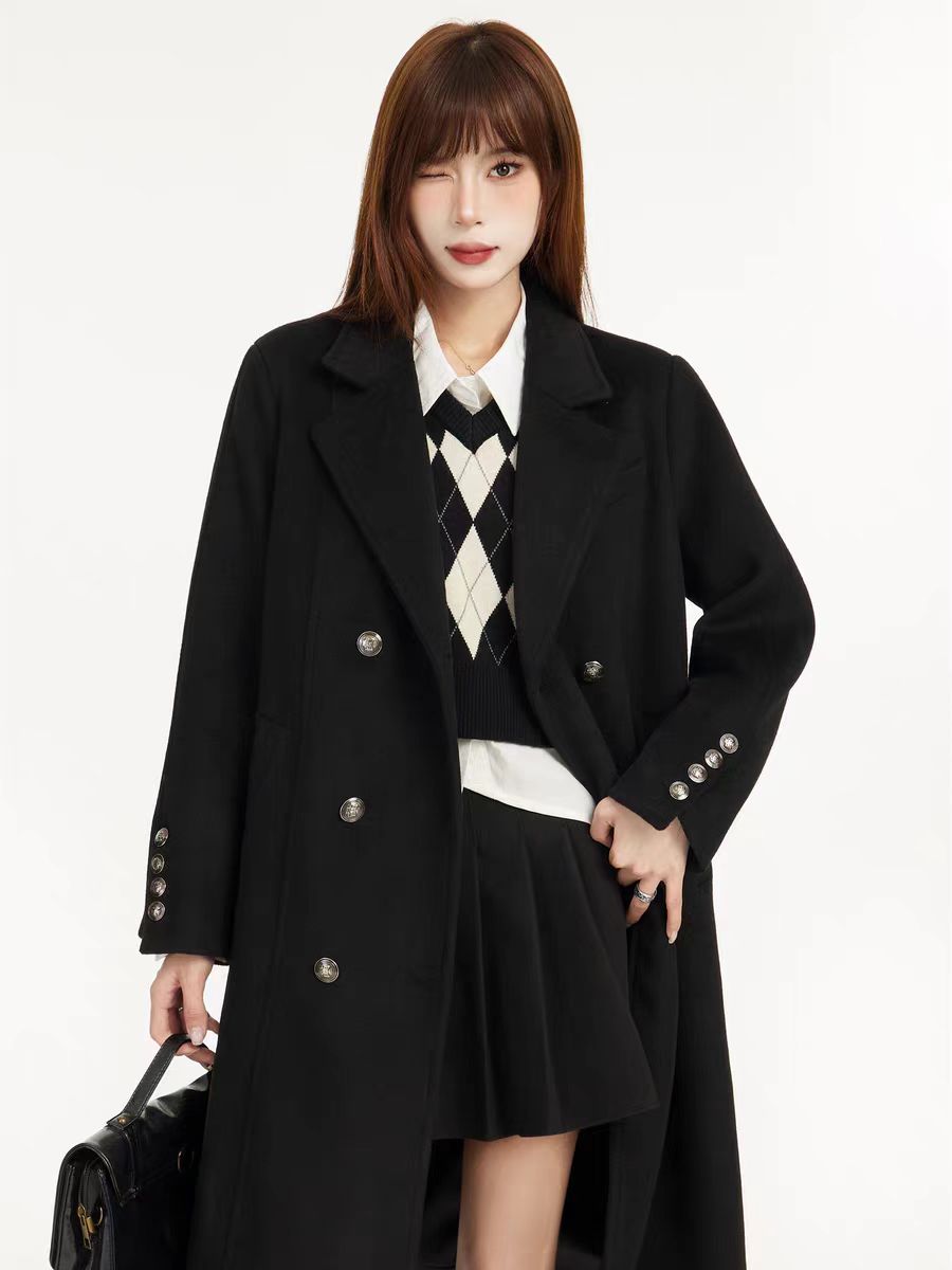 Spring style straight shoulder plus cotton slim woolen coat high-end woolen coat